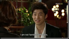 Jin mengulurkan tissue. Ae-jung mengambil tissue itu dan membersihkan bajunya. Jin mengeluh dan menyorongkan lebih banyak tissue. Ae-jung pikir tissue itu untuk dirinya tapi ternyata Jin memintanya mmbersihkan mobilnya yang terkena percikan kopi (dari awal Jin memberi tissue itu bukan untuk Ae-jung tapi mobilnya). Ae-jung tak percaya ada orang yang begitu tak sopan.